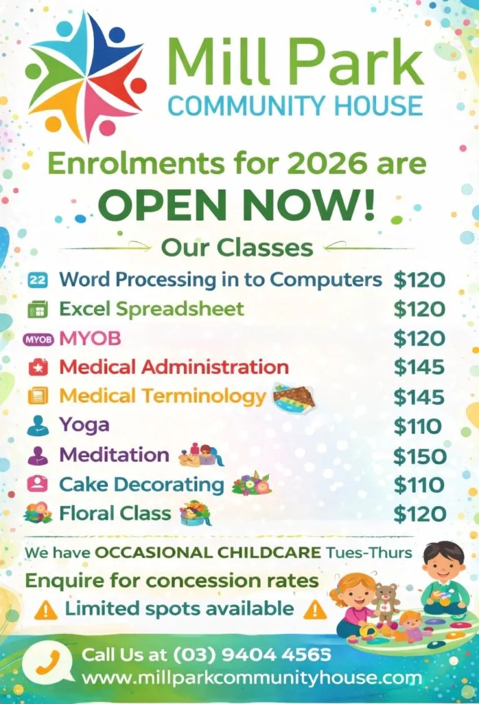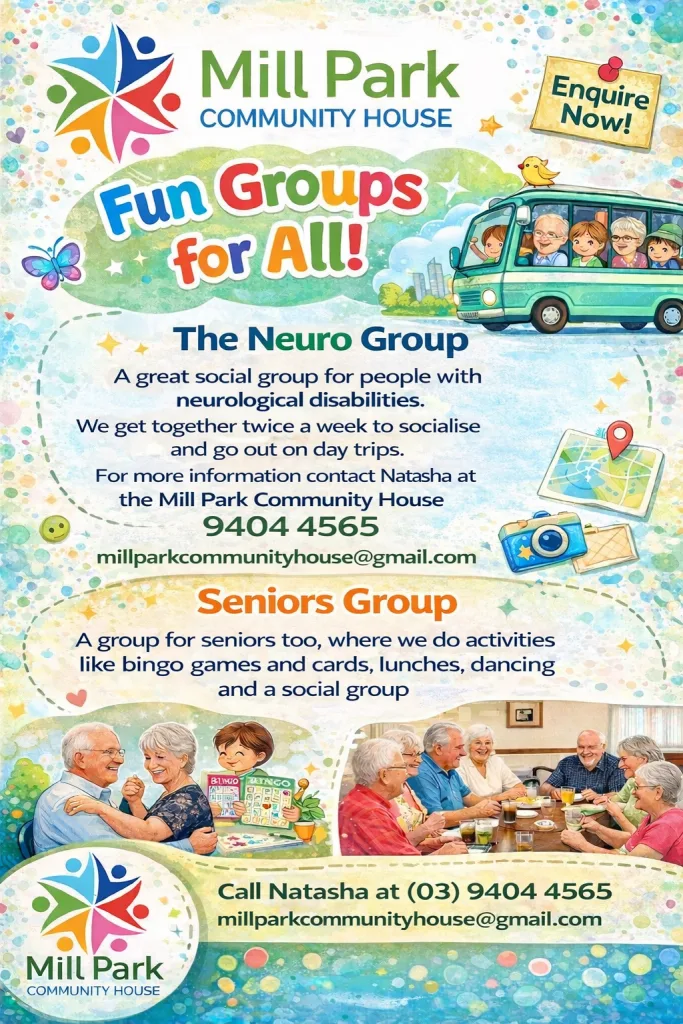 Whether you’re looking to learn something new, join in community activities, or access quality disability support services, Mill Park Community House is here to help you learn, grow, and connect.